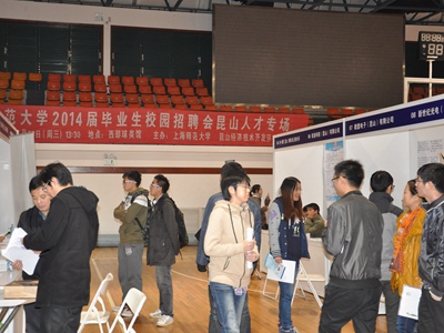 11月27日下午,2014届毕业生校园招聘会昆山人才专场在我校徐汇校区西部球类馆举行,校党委副书记葛卫华、相关职能部门和信机学院领导、各学院就业专职辅导员来到招聘现场,与用人单位亲切交流。