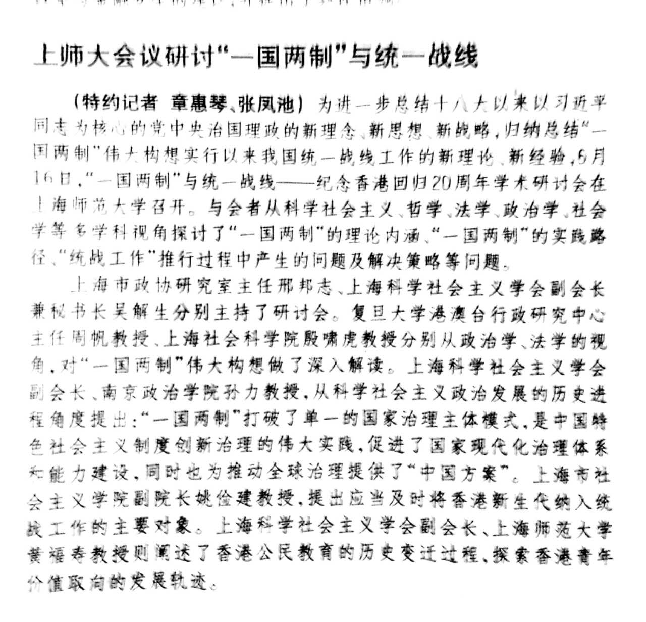 社会科学报:上师大会议研讨“一国两制”与统一战线