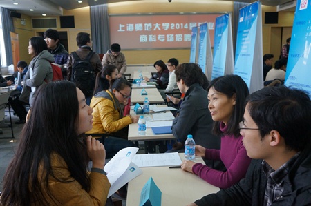 12月18日下午,上海师范大学2014届毕业生商科专场招聘会在徐汇校区会议中心二号报告厅举行。学校相关职能部门负责人现场走访了用人单位,与应聘学生进行了亲切交谈。