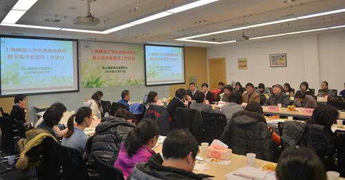 12月27日,2013年度上海师范大学心理健康教育暨示范中心建设工作研讨会在徐汇校区召开,校党委副书记葛卫华出席并讲话。上海市教委德育处胡宝国处长,上海学生心理健康教育发展中心主任吴增强教授、副主任张海燕教授、陈增堂教授,以及我校心理系卢家楣教授等应邀出席,就我校心理健康教育工作新发展以及上海高校心理健康教育示范中心建设等进行研讨和指导。会议由学工部长张文潮主持。