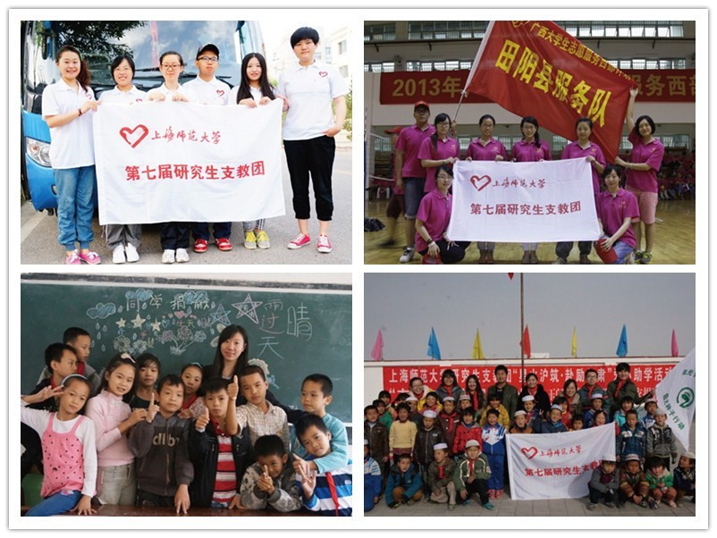 在基层实践中创先争优,在服务西部中建功立业。上海师范大学研究生支教团志愿者不仅身先士卒响应时代的召唤,而且也为全校青年树立了爱国奉献的典范。据悉,我校支教团志愿者继2013年开展“梦圆广西”活动受到强烈反响后,志愿者们将继续开展助学甘肃的活动,为甘肃学童募集课外书籍。如果您也想与上海师范大学支教团一起参与,可登陆新浪微博(@上海师范大学研究生支教团)了解具体情况。