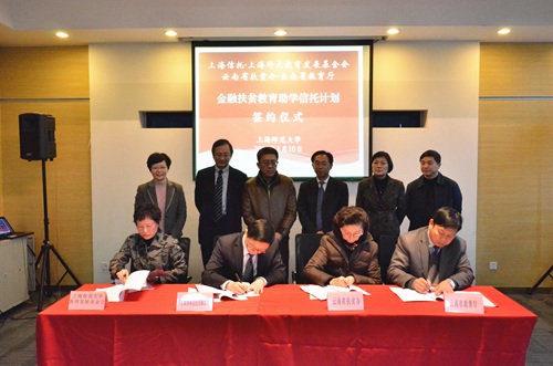 1月10日上午,由上海国际信托有限公司、上海师范大学教育发展基金会基金会、云南省扶贫办、云南省教育厅共同设立的“金融扶贫教育助学信托计划”签约仪式在学校会议中心举行。上海信托党委书记、董事长潘卫东,校党委书记、基金会理事长陆建非,云南省扶贫办主任李新平,市合作交流办处长陈晓云以及云南省教育厅等各方代表出席了签约仪式。会议由副校长、基金会副理事长柯勤飞主持。