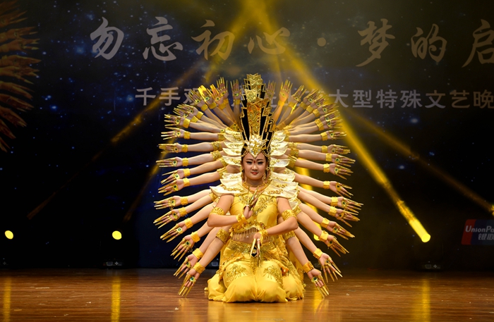 演出中,舞蹈《千手观音》以其华丽的造型、曼妙的舞姿、庄严的法相征服了全场观众,无言而有力地传递着至善、至纯、至美的人间箴言:只要心地善良,心中有爱,就会伸出一千只手去帮助别人;只要心地善良,心中有爱,就会有一千只手来帮助你。