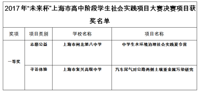 标题:2017“未来杯”上海市高中阶段学生社会实践项目大赛