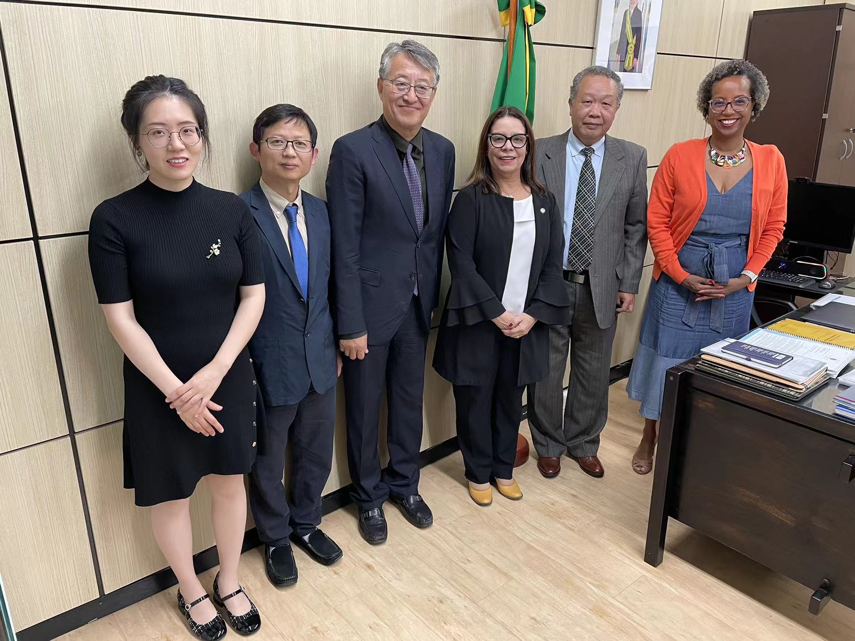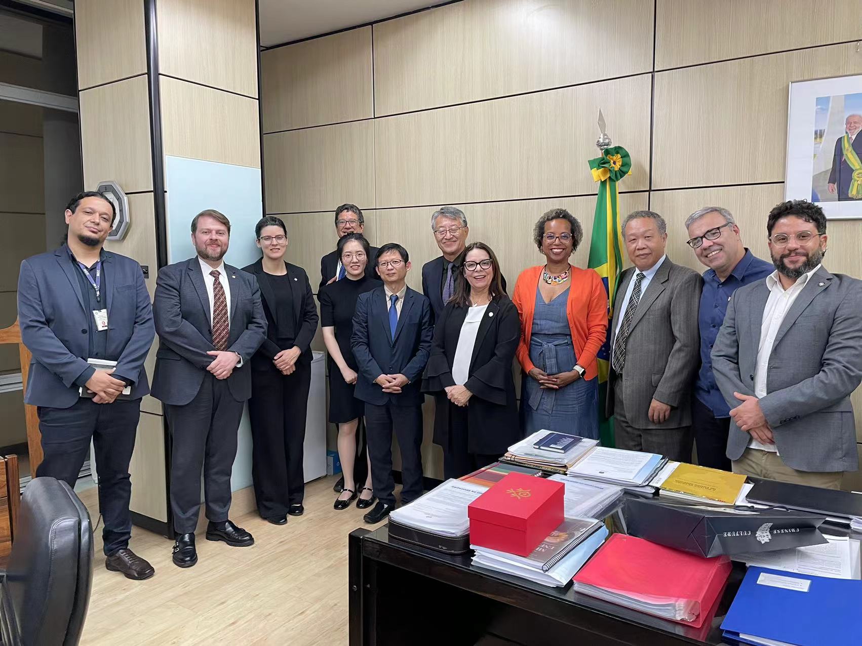 9月18日下午,在中国驻巴西大使馆王志伟参赞带领与陪同下,联合国教科文组织教师教育中心代表团受到巴西教育部高等教育主管副部长丹妮斯·皮雷斯·卡瓦略(Denise Pires de Carvalho)教授、基础教育主管副部长卡西娅·施韦克哈特(Katia Schweickardt)教授接见,并就竞赛选拔巴西优秀数学教师来沪参加教师专业发展研修项目等事宜进行会谈。会上,王志伟参赞向巴方介绍我中心情况,大力赞扬我中心主持国际教育交流项目、促进国际教师发展的专业能力。他表示,明年是中巴建交50周年,双方将举行一系列中巴人文交流活动,巴西数学教师上海研修也能成为其中一项高水平教育交流活动。胡国勇教授、黄兴丰教授与丁若曦博士分别介绍了上海数学教育、教师教育与教师专业发展案例,以及中英与中坦数学教师交流项目开展情况。卡瓦罗副部长对首届巴西数学教师奥林匹克竞赛的举办十分期待,也对我中心为竞赛优胜教师提供专业发展机会与资源表示由衷感谢。巴西教育部国际事务、学校课程管理等部门负责人也参与了此次会谈。