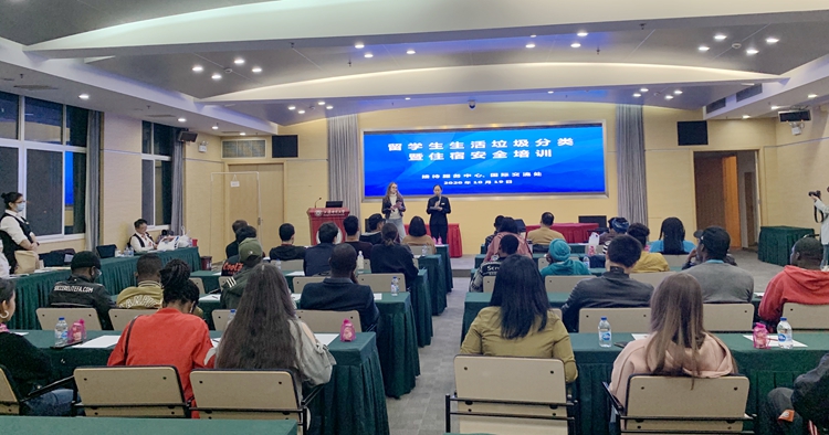 为了共建文明安全的校园住宿环境,让“垃圾分类新时尚”深入人心,由接待服务中心、国际交流处共同举办“留学生生活垃圾分类暨住宿安全培训”活动,于10月19日晚在会议中心2号报告厅进行,接待服务中心总支书记沈爱良、主任倪力红、国际交流处副处长陈志禄出席活动。