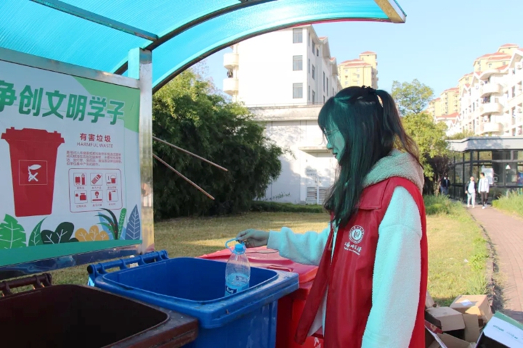 活动伊始,志愿者们被分为若干小组,每个小组各负责一个区域的垃圾分类志愿服务。每天早中晚三个时间段,外汉志愿者们都身穿红马甲,坚守在自己的岗位上,帮助同学们做好垃圾分类工作。但在活动期间,志愿者们也发现了许多错误投放垃圾的现象,如同学们常把纸盒当作干垃圾,将有食物残余的外卖盒直接投放到干垃圾桶等。对此,志愿者们一一进行了指导与纠正。一周转瞬即逝,志愿者活动接近尾声。在辛勤劳动之余,志愿者们也受益匪浅,感悟良多。正如他们所说:“这次活动弘扬了节约资源的环保理念。随着垃圾分类的推广,我们一定可以拥有更加绿色健康的生活。”也有同学表示:“未来我们会在生活中坚持垃圾分类,弘扬外汉文明风采。”