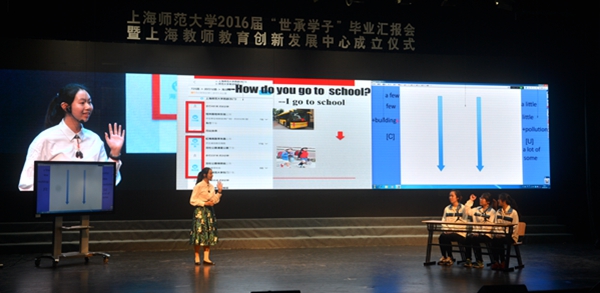 5月25日,上海师范大学2016届“世承学子”毕业汇报会暨上海教师教育创新发展中心成立仪式在霞棐剧院举行。市教委副主任王平出席并讲话,校领导滕建勇、葛卫华、柯勤飞、刘晓敏,市教委相关处室负责人,市部分区县教育局局长,我校部分实习基地学校校长,校相关职能部门和学院负责人,以及教师代表、世承班学生代表等500多人出席了大会。