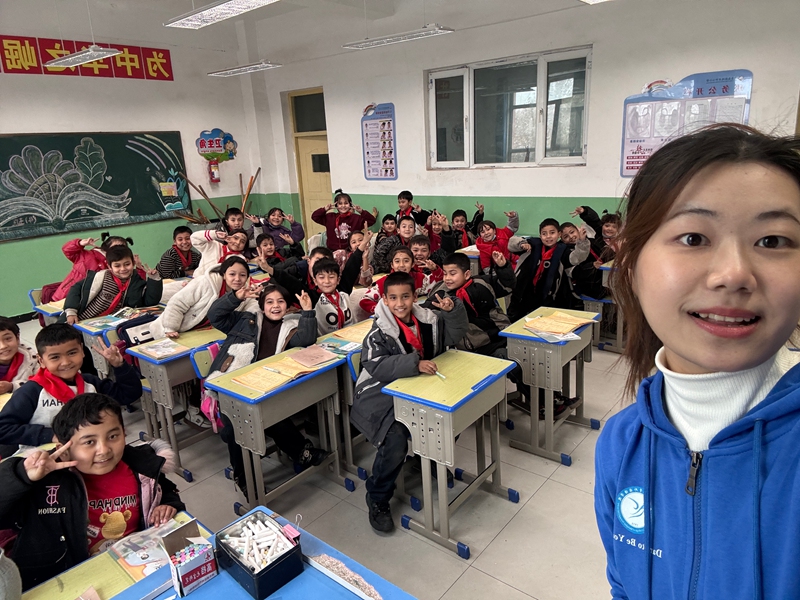 窗外大雪飞扬,教室内暖意融融,在新疆喀什泽普县赛力乡中心小学三年级1班的课堂里,响亮的英文字母歌在回荡。在这个有着1000余名小学生却只有1名英语教师的学校,伴随着冬天第一场雪一起到来的,是我校外国语学院的支教老师们。她们用温暖的笑容为孩子们打开了一扇通往多彩世界的窗。
