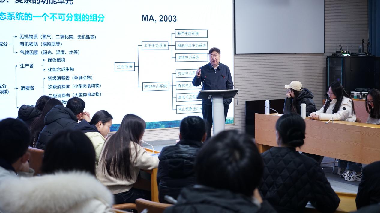 课程伊始,傅伯杰院士开宗明义,深刻阐释生态文明的核心要义——实现人与自然的高水平和谐共生。他强调,四大类生态系统服务是国家安全、公众健康与社会福祉的重要基石,并指出我国生态环境治理正从重点治理转向系统治理、从被动应对转向主动防控,以历史性转型为美丽中国建设注入强劲动能。