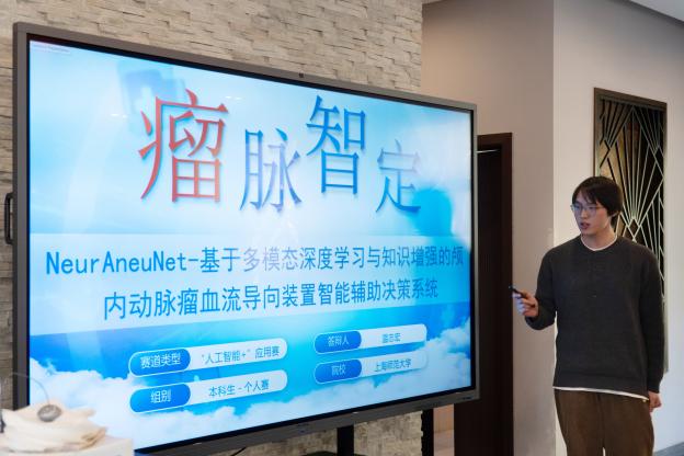 学院团委书记王梓桐、双创专项辅导员魏薇分别汇报了学院近三年来在推进“挑战杯”与“国创赛”工作中积累的典型经验与育人成效。第十九届“挑战杯”“人工智能+”专项赛一等奖项目负责人、信机学院2023级计算机科学与技术(师范)专业本科生温志宏,现场介绍了其项目《NeurAneuNet-基于多模态深度学习与知识增强的颅内动脉瘤血流导向装置智能辅助决策系统》的技术架构与应用前景。
