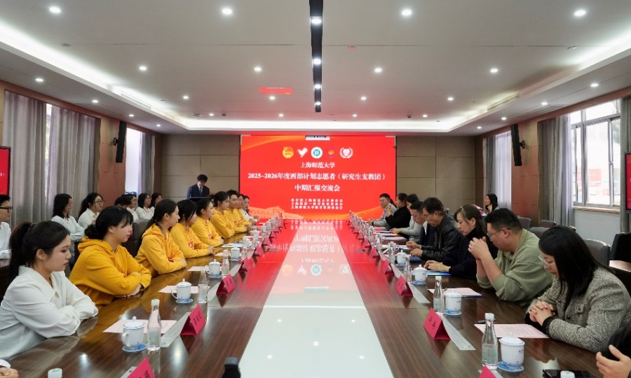 1月15日下午,我校2025-2026年度西部计划志愿者(研究生支教团)中期汇报交流会在线上线下同步举行。校党委副书记、副校长朱惠军,校党委常委、总会计师曹光明,上海韩哲一教育扶贫基金会秘书长韩烽火,学校办公室副主任、教育发展基金会秘书长陈燕,校团委书记黄雨艳,上海韩哲一教育扶贫基金会秘书长助理李敏,校基金会和团委相关老师以及第27、28届研究生支教团全体成员、2025-2026年度西部计划志愿者出席本次交流会。