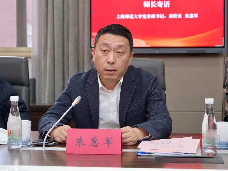朱惠军对上海韩哲一教育扶贫基金会的长期支持表示感谢,向在西部广袤大地上辛勤耕耘的全体志愿者表示问候,希望他们坚定信念、深化认识,做胸怀“国之大者”的明白人;深耕教学,潜心育人,做基础教育一线的实干家;虚心学习、锤炼本领,做知行合一的奋斗者;擦亮品牌,传递能量,做师大精神的优秀代言人。他勉励全体西部计划志愿者用实际行动架起连接东西部、促进民族团结、助力乡村振兴的青春桥梁。