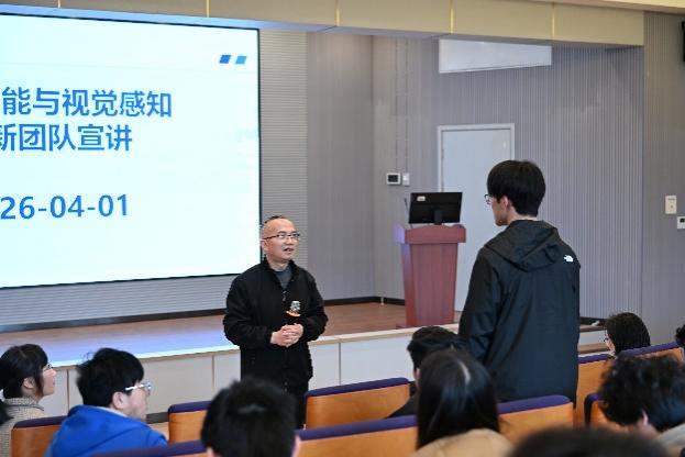 袁非牛教授结合学生学业与升学需求,引导大家立足专业基础、科学规划发展路径,鼓励学生主动参与科研。他重点介绍了人工智能与视觉感知(AIVP)科研团队,团队依托两大市级平台,聚焦智能感知、图像处理、自然语言处理等方向开展研究,承担多项国家级与省部级项目,科研与育人成果突出,团队结构合理、梯队完善。