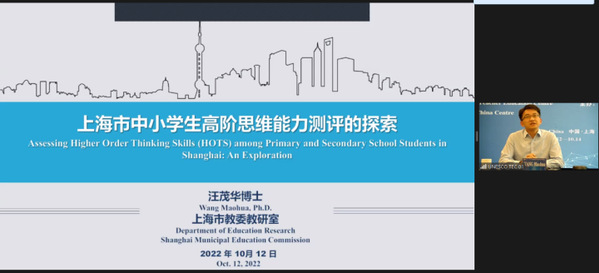 汪茂华教授以“上海市中小学高阶思维能力测评的探索”为题,分别从“什么是高阶思维”“如何对中小学高阶思维能力进行测评”“影响学生高阶思维能力的要素”“在课堂上如何培养学生的高阶思维能力”四个方面介绍了目前上海如何进行高阶思维的测评和提升。
