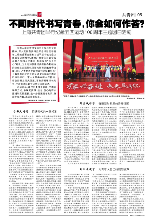 青年报(整版报道):不同时代书写青春,你会如何作答? 上海共青团举行纪念五四运动106周年主题团日活动