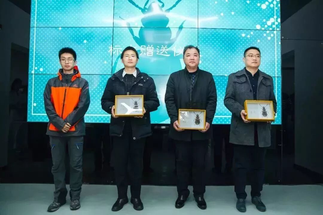 ▲工作室代表宋晓彬向上海师范大学、上海自然博物馆、滨江森林公园捐赠了“上海双斑粗角步甲”的活体标本以示纪念。