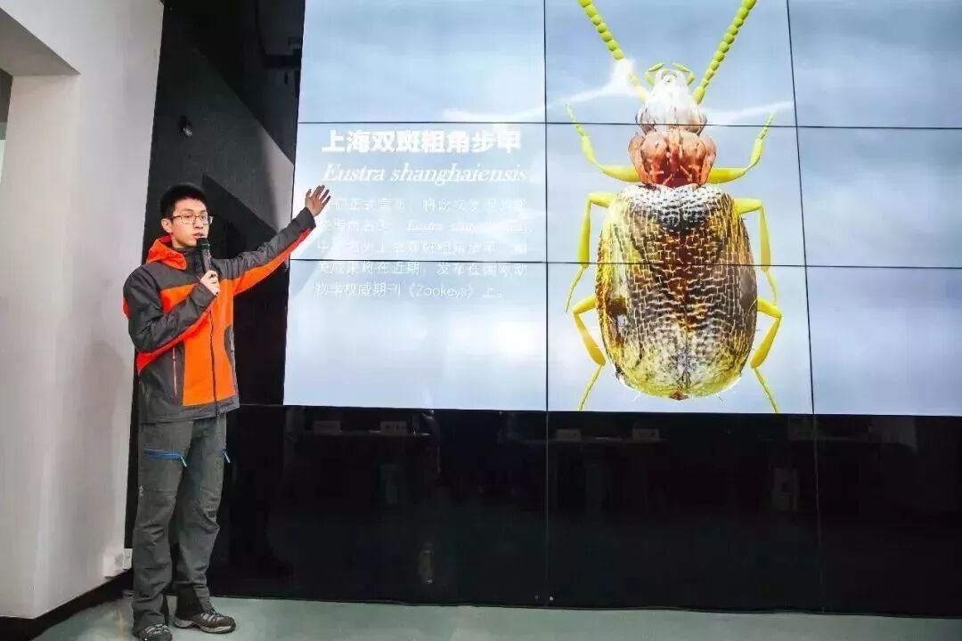 ▲“上海双斑粗角步甲”的发现人——恋野物语自然探索工作室COO宋晓彬发表了关于新种的主题演讲。