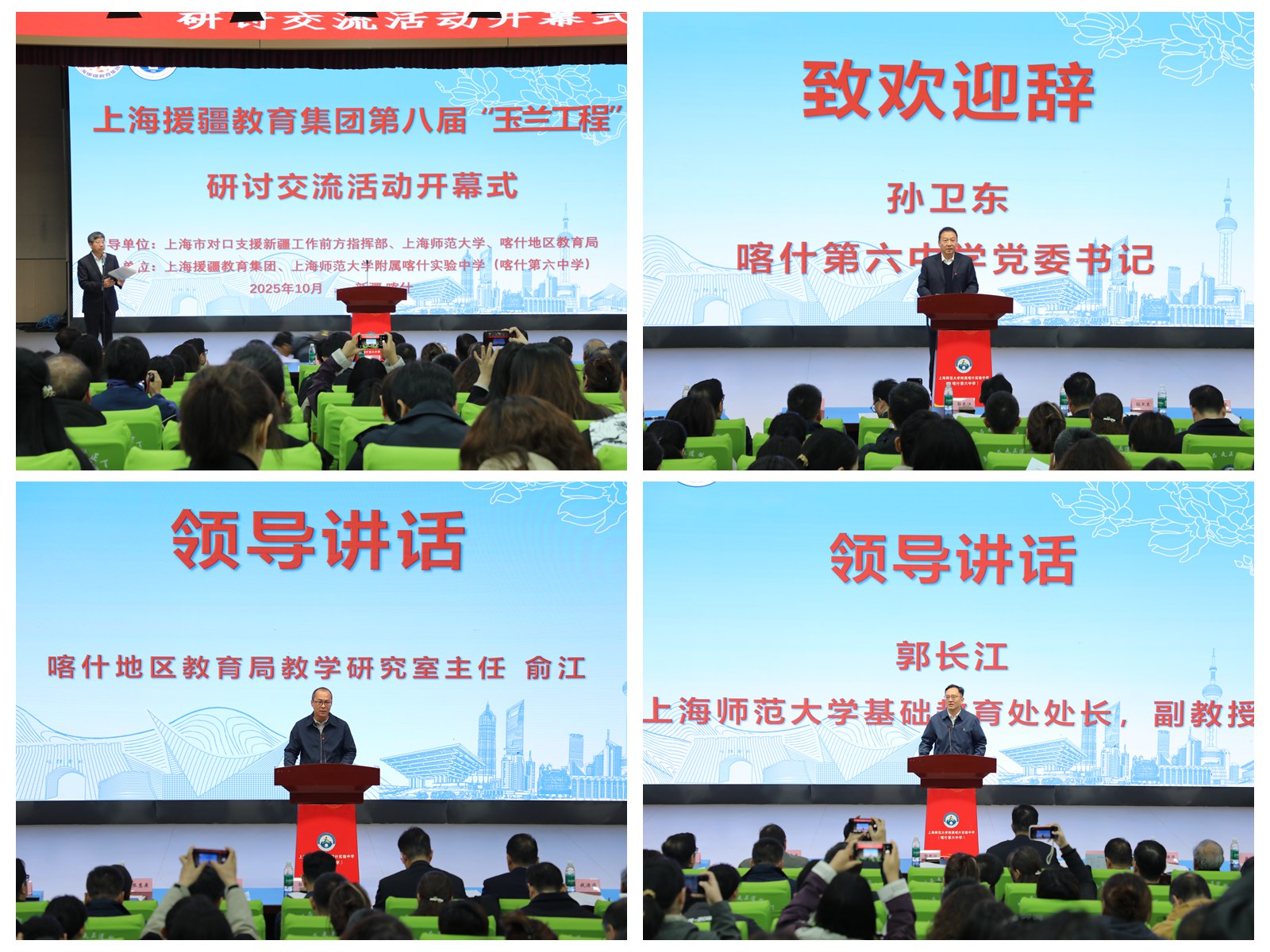 上海师范大学基础教育处处长郭长江指出,此次“玉兰工程”研讨交流活动是有史以来,专家规模最大、内容覆盖最广、形式最为丰富的一届。他强调,援疆工作要胸怀理想信念、勇担责任使命,以赤诚之心扎根实践,在骨干教师培养、校长管理能力提升、激发学生学习动力及全面提高学生综合素养等方面持续发力,为推动喀什教育发展注入持久动力。