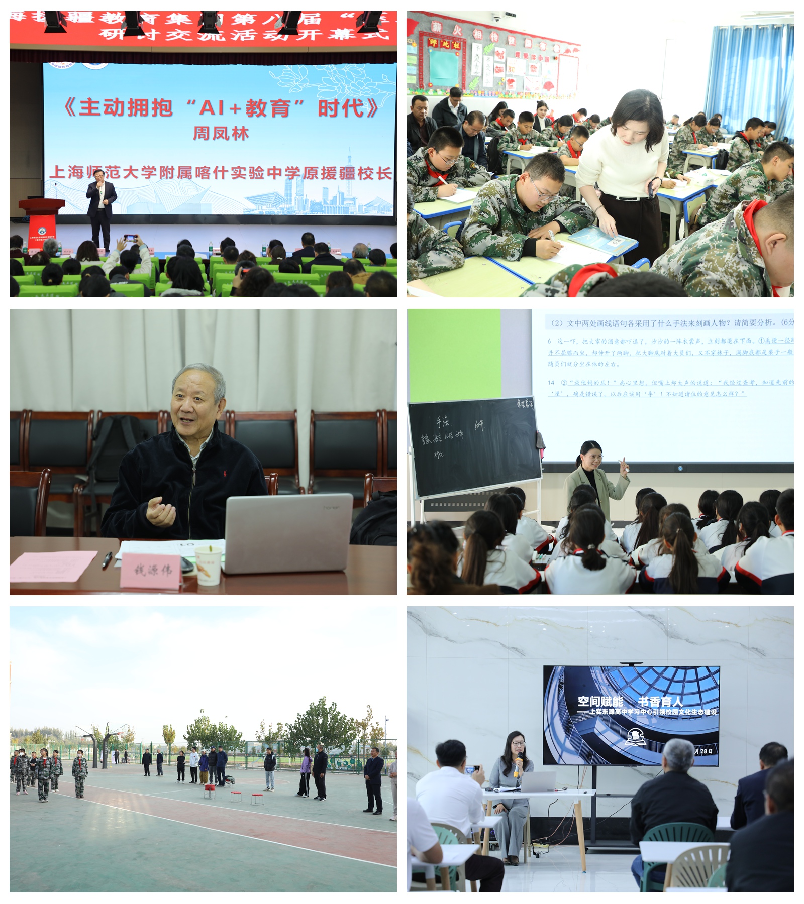 针对附属喀什实验中学对语文、数学、信息技术、体育等学科的发展需求,专家团进行推门听课、评课、研课十余节,并指导教研组开展教研活动,传递先进的教育理念和教学思想。围绕“AI赋能教育”“足球特色发展”“文化润疆”等议题,共话当前学校发展面临的机遇与挑战。