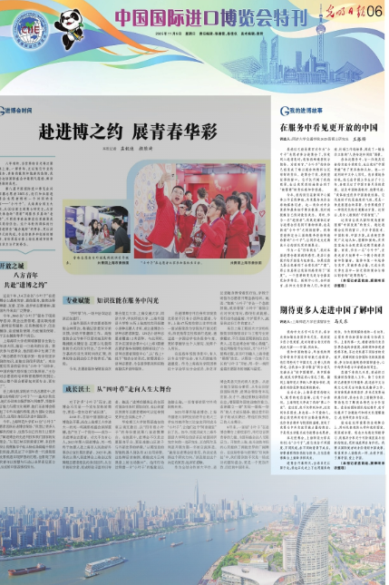 作为全球合作的大平台,进博会具备天然的育人优势。从语言能力到综合素质,从专业自信到国际视野,进博会帮助青年见世面、长才干,通过接触全球前沿业态,增强服务国家战略的能力,逐渐建立一套“发现—锻炼—培养”的人才成长链条,铺设着年轻学子的成长路径,帮他们找到自己的人生舞台。