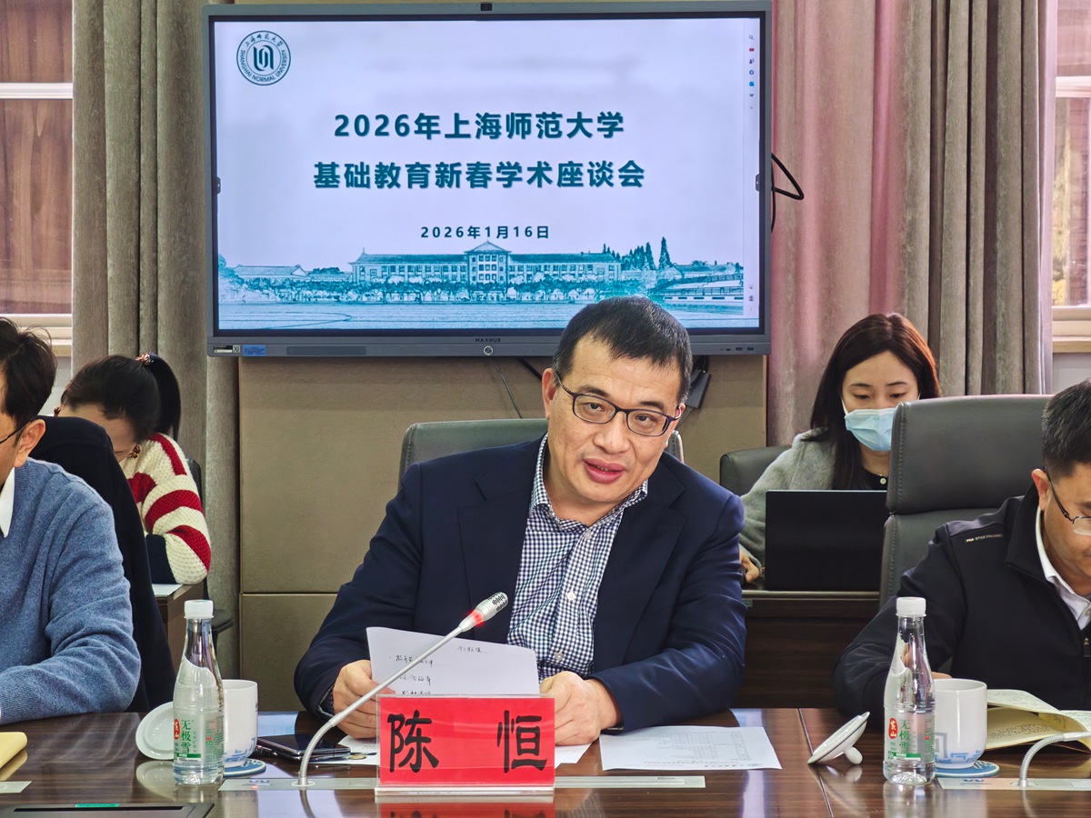 1月16日下午,2026年上海师范大学基础教育新春学术座谈会在徐汇校区西部外宾楼101会议室举行。本次座谈会的主题是:“这个时代需要什么样的教育家?怎样培养未来的教育家?上海师范大学有何作为?”座谈会邀请了上海中学原校长唐盛昌,上海市实验学校原校长徐红等十位校长参加。我校党委副书记、校长陈恒,校党委常委、副校长李晔,学校办公室、校友会、基础教育处和基础教育发展研究院全体成员参加。