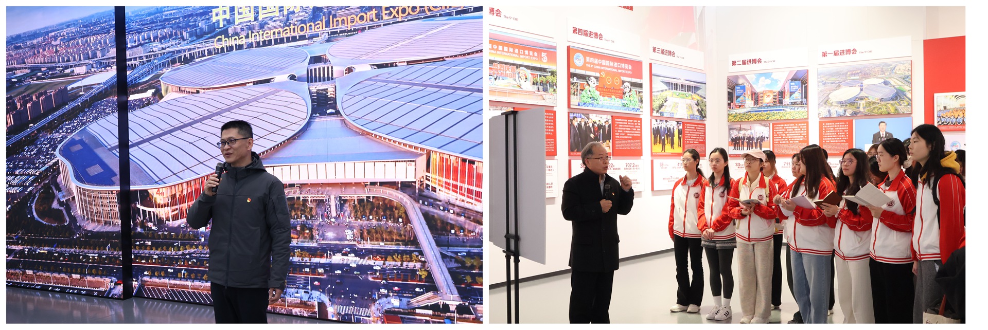 党的二十届四中全会提出,扩大高水平对外开放,开创合作共赢新局面。多年来,进博会已成为中国与世界各国共享机遇、共同发展的重要平台。活动伊始,学院党委副书记、副院长姚秋磊回顾了学院此前举办的系列情景思政课程,强调追寻总书记的足迹,既是一次思想洗礼,更是一次实践历练;他勉励同学们在情景课堂中用心观察、深入思考,从进博文化展示中心这一开放窗口,学习感悟中国与世界同频共振的时代脉搏。