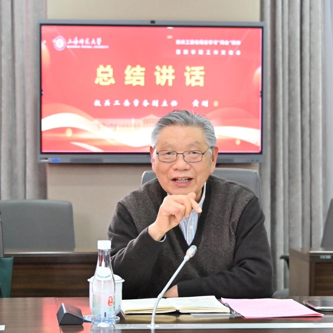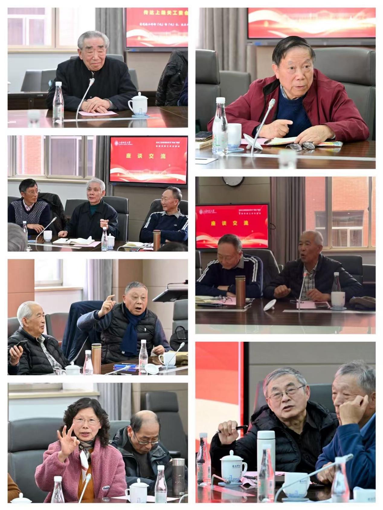 在交流环节,老同志们围绕学习两会精神、参与关工委工作、授课育人经历等主题,踊跃分享了学习心得和实践体会。年届九旬、全国关心下一代先进个人、校直属离休干部党支部书记、关工委讲师团成员杨宇分享了学习体会并坚定表示,将始终坚定拥护“两个确立”、坚决做到“两个维护”,为做好关心下一代工作筑牢思想根基。“杨德广工作室”导师、老校长杨德广结合自身深耕关心下一代工作的实践,深情分享感悟。他说,老同志要深学细悟党的创新理论,在备课时要精心打磨课程,要深入贯彻落实习近平总书记关于关心下一代工作的重要论述,发挥老同志的优势,将宝贵经验倾囊相授,助力青年师生成长。校关工委讲师团成员叶伯平分享了他担任普陀区“普老宣讲团”团长的初心与历程,以及他在社区、学校宣讲两会精神的体会。与会老同志们纷纷表示,身为学校发展的参与者和亲历者,将倾心倾力聚焦立德树人根本任务,帮助青年师生成长成才,努力为学校事业发展与人才培养贡献力量。