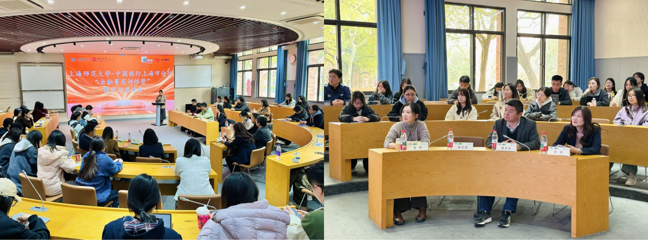 3月25日下午,上海师范大学-中国银行上海市分行“金融菁英训练营”宣讲会在商学院A108教室召开。会议由商学院学生工作负责人王虹主持,中国银行上海市徐汇支行副行长陈艳及支行相关部门负责人和商学院副院长姚亚伟和崔百胜出席。本次宣讲会吸引来自全校多个学院的百余名2027届学子踊跃参与。