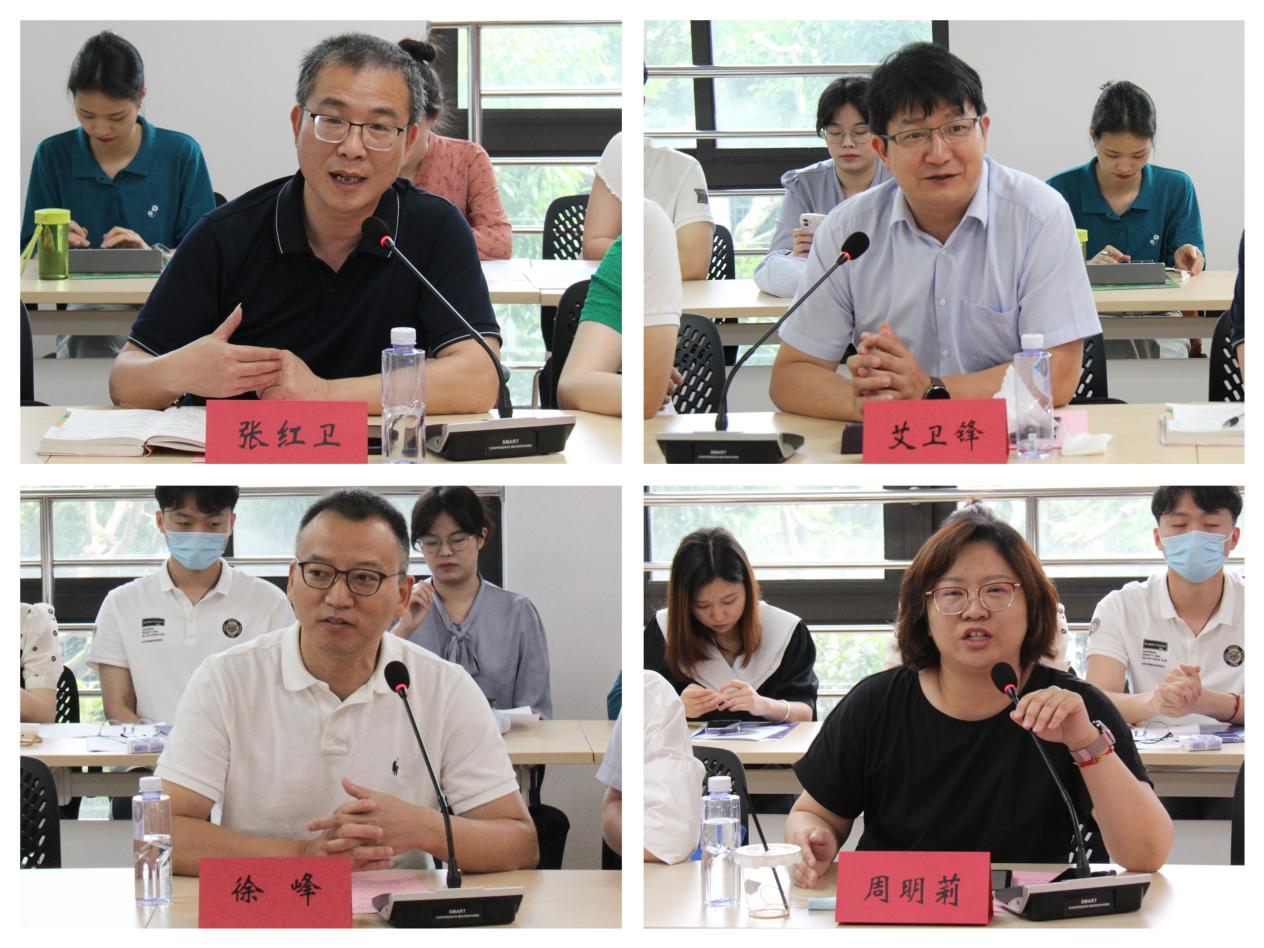 上海市第二中学校长助理兼教导主任陈佳介绍了上海市第二中学的发展历程和对青年教师的培养计划,并对学院未来的人才输送表示欢迎。上海市第二初级中学人事干部薛逸介绍了市二初级学校是徐汇区教师专业发展学校,重视教师培养。她表示一名优秀的道法老师要有过硬的专业能力,同时要有亲和力和人格魅力,并欢迎学院学生到校跟岗实习。上海市嘉一实验高级中学党支部副书记兼嘉定一中教师发展部主任周明莉建议加强学生的理想信念教育,同时将专业教育与时代焦点、时代热点和时代难点相结合。上海师范大学附属嘉善实验学校校办主任覃文娟建议培养学生“跨界”技能,既要培养学生上好思政课的能力,又要有宽广的国际视野和历史视野。