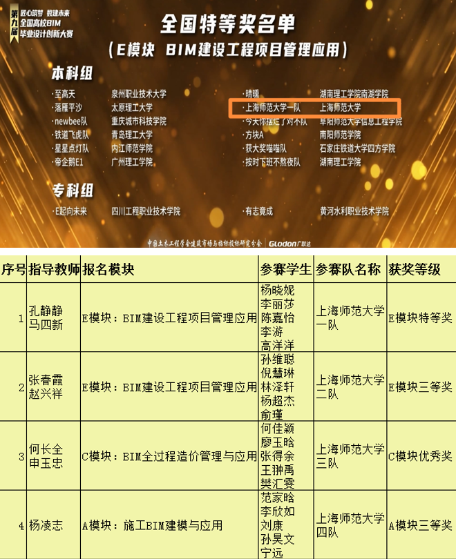 第九届全国高校BIM毕业设计创新大赛---全国特等奖名单:
