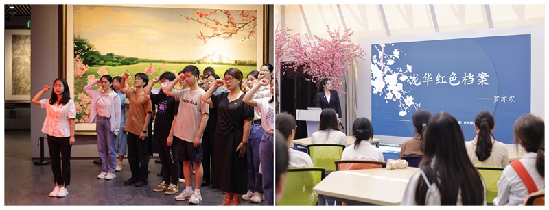 面对鲜红的党旗,学生党员举起右拳郑重宣誓,誓言铿锵有力,承诺掷地有声,激昂壮阔的入党誓词穿越时空、彼此激荡,充分展现了全体党员对党的赤胆忠心,表达了永远听党话跟党走的坚定信心与决心。随后,学生党员还聆听了《龙华红色档案》系列微党课。