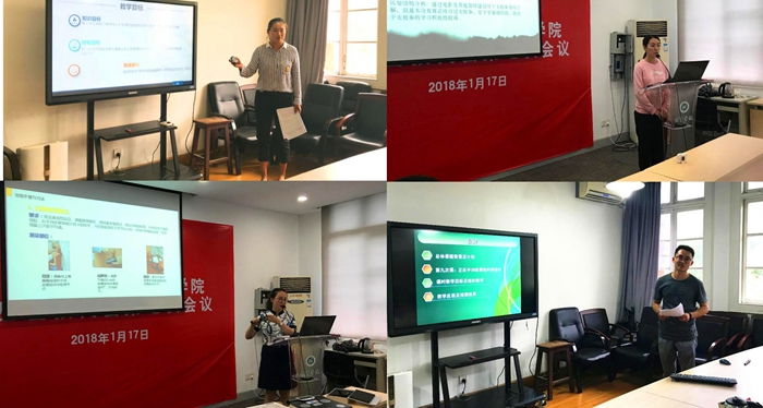 比赛共有16名青年教师参加,分两组进行比赛。竞赛由教学设计、课堂教学演示和教学反思三部分组成,课堂教学比赛之前各位参赛教师准备三节教学设计内容供专家评委打分。当天的比赛规则为参赛选手抽签决定讲课顺序和展示内容,每人讲课或说课15分钟,课程结束后提出自己的教学反思及评委提问。本次竞赛活动从3月开始筹备,参赛教师十分重视和珍惜此次比赛和学习机会,在赛前进行了充分的准备工作,认真完成了教学文件的梳理和教学演示PPT的制作。竞赛时各位教师在规定时间内进行讲课,内容丰富多样。术科课程教师多通过举实例、示范动作等形式讲解和演示,动静结合、生动有趣;理论课程教师多从基本概念出发,由浅入深,层层递进,设计用心。在教学反思环节,多位参赛选手强调各类教学新手段的重要性、注重培养学生的能力和师生间的互动,同时也提出了自己的教学体会。