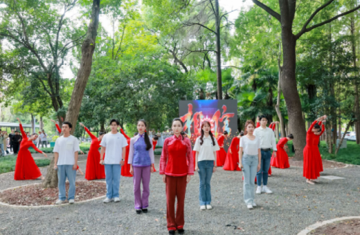 最近,“上海师大·印象”艺术森林校园文化展示季——沉浸式原创校园歌舞剧《2020好儿女》精品展演,在上海师范大学建校初期就种植的水杉林里举行,沉浸式演出现场吸引了校内师生驻足观看。