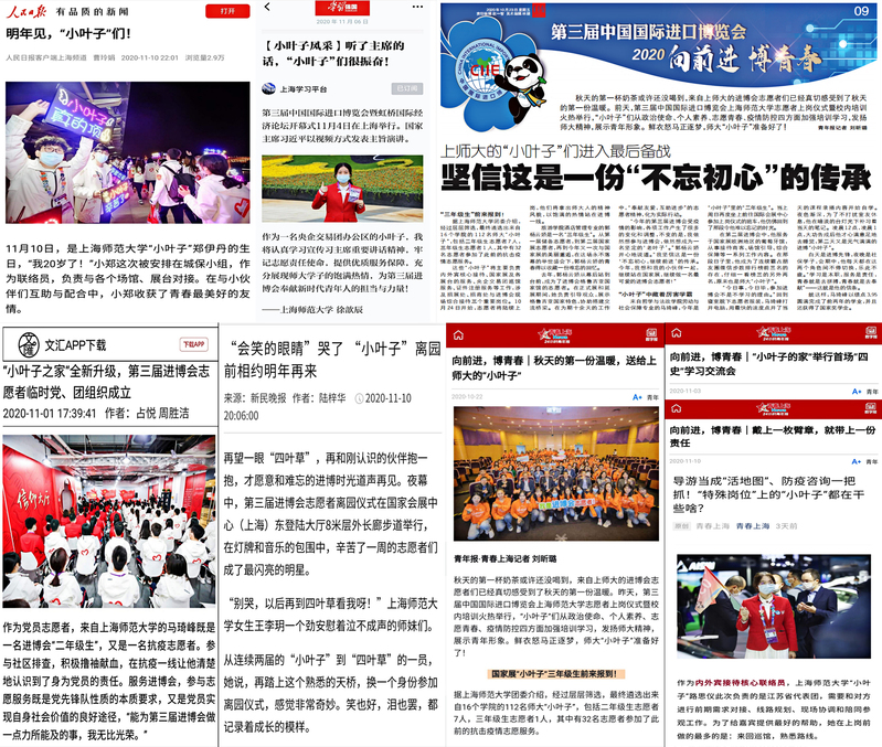 慰问最后,校领导再次对我校进博会总体工作表示肯定,和志愿者们一起以屏幕前的比心动作结束了本次“云见面”。师大小叶子们以昂扬之姿奋斗在各个岗位,获得了参访嘉宾、展位负责老师等一致好评,其优秀事迹也受到了学习强国、人民日报、青年报、新民晚报、文汇报、青春上海等媒体的大量报道。