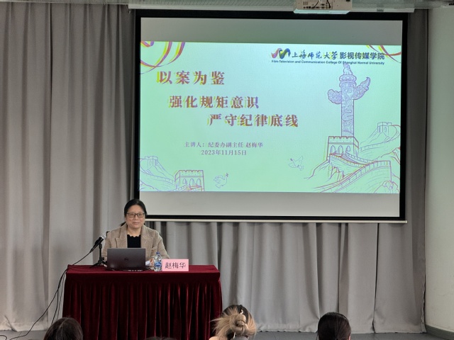 为深入学习贯彻习近平新时代中国特色社会主义思想和党的二十大精神,加强学生党员的党性修养,强化学生党员的规矩意识和纪律意识,11月15日下午,影视传媒学院邀请了校纪委办副主任赵梅华老师做了“以案为鉴,强化规矩意识,严守纪律底线”专题党课,学院全体学生党员参加学习,党课由学院党委副书记、副院长张皓月主持。