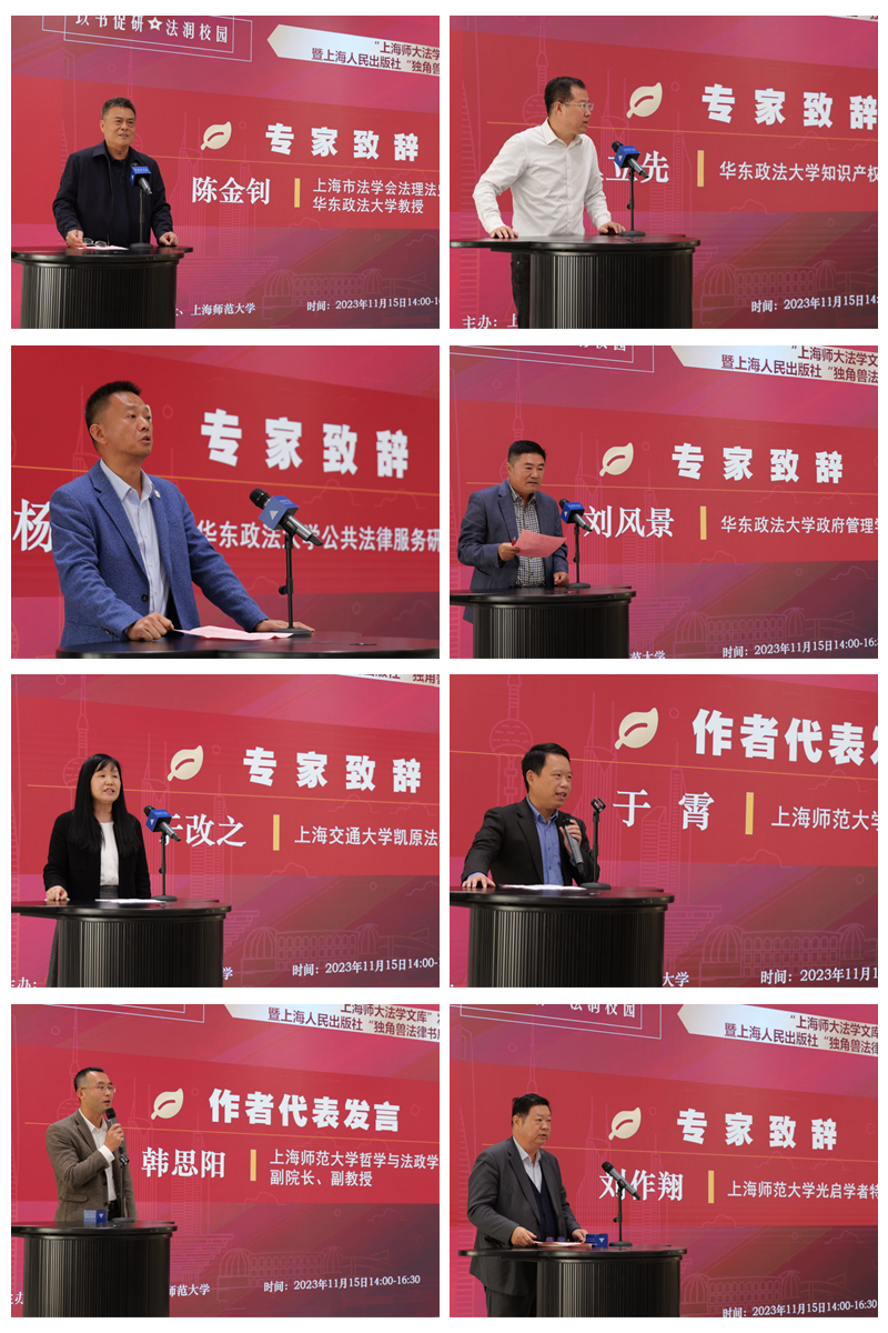 11月15日下午,上海师范大学法学专业联合上海人民出版社于上海图书馆东馆7楼阅读推广区举办了“以书促研 法润校园——‘上海师大法学文库’发布暨上海人民出版社‘独角兽法律书房’进校园活动”启动仪式,来自沪上高校的专家学者和出版界、媒体界嘉宾参与了此次活动。