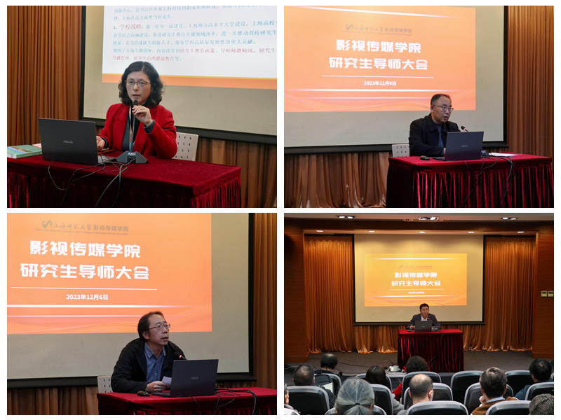 12月6日下午,影视传媒学院召开全体研究生导师大会,学院领导、全体导师、研究生教务员、研究生辅导员等出席会议。会议由学院党委副书记、副院长张皓月主持。