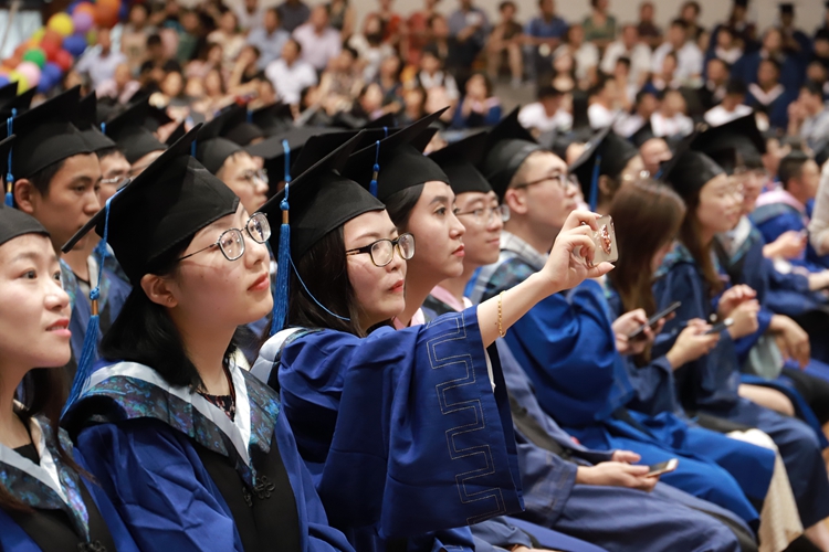他希望毕业研究生始终铭记学校带给大家的信念、精神和情怀,努力做时代新人!如何做时代新人,朱校长向毕业研究生提出三点要求:一是要立大志,坚定信仰,胸怀理想。今天的大家,正身处“两个一百年”奋斗目标的历史交汇期,你们既是追梦者,又是圆梦人。你们要用青春之理想、青春之奋斗,为新时代赋能,为中国梦添彩。二是要勇创新,脚踏实地,追求卓越。一方面在追求真知的道路上突破传统、兼收并蓄、不懈奋斗,特别是在新技术、新业态、新产业的领域中大展宏图,另一方面,更要学会研究价值、思考伦理、研判大势,培养自己的思维深度、视野宽度与人文温度。三是要会生活,心有阳光,感受美好。人生的旅途,总是既有疾步前行的时候,也有泥泞挣扎的时刻,希望同学们能立足长远和全局,以更多的角度和立场去思考问题。多一些理解与包容,多一些善意与关怀,更多一些温暖与阳光。