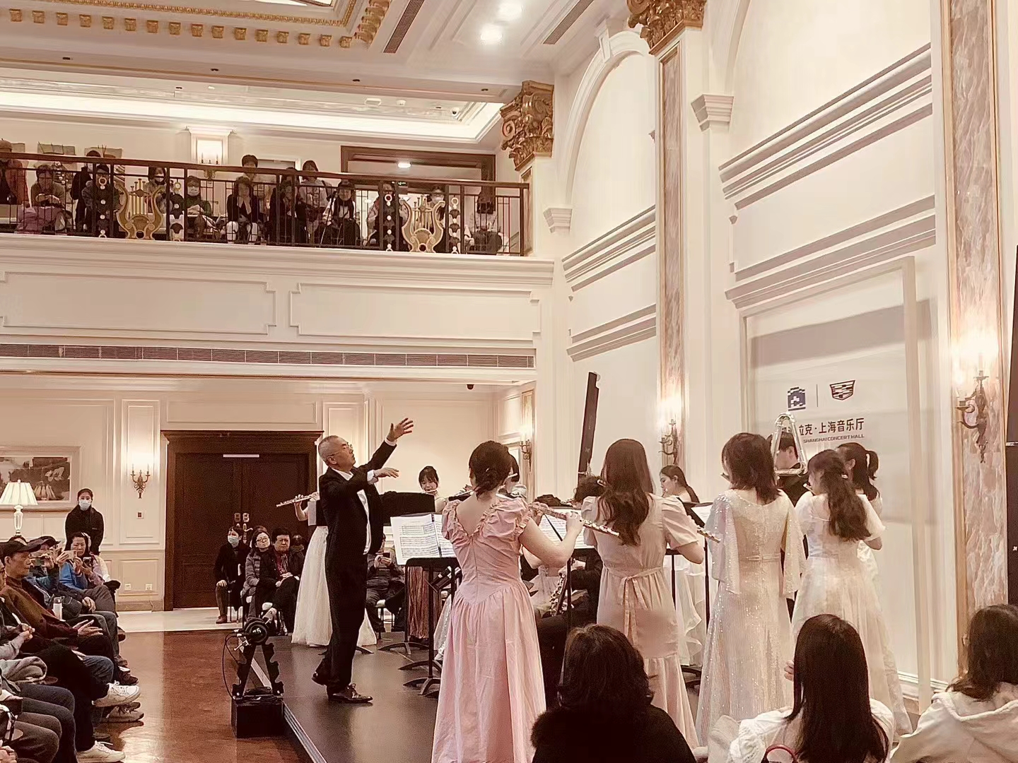 3月15日中午,“和谐”长笛乐团专场“音乐午茶”在凯迪拉克·上海音乐厅举办。这场演出吸引了众多音乐爱好者和长笛迷前来观赏,音乐厅内座无虚席,观众们对这场长笛盛宴充满了期待。