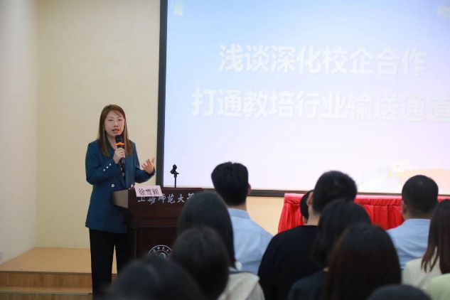 结对仪式上,三家企业分别就银行、教育和公司三类不同的行业对人才的需求与培养进行深入分析。中国银行漕河泾支行的郑佳瑶介绍了中国银行与各高校合作共建的活动及商业银行对人才发展平台、职位体系和培养体系;临港漕河泾人才有限公司的马家禄分析了2020年应届毕业生的就业意向并提出了产教融合模式的构想,建议加强产教融合实训基地建设,创新培养模式,优化培养结构,提升学生创新精神;上海新东方教育培训有限公司的徐雪颖介绍了近几年师大为新东方输送人才的情况及新员工发展通道,并表示校企合作可以打通教培行业输送通道,促进师范生多元化就业。通过分析介绍,有利于学生进一步了解就业市场对人才的需求和发展路径,提高实践水平和就业创业能力。