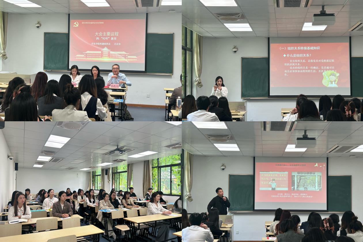 为深入学习贯彻习近平新时代中国特色社会主义思想,进一步加强毕业生党员党性教育,5月22日下午,音乐学院党委在徐汇校区三教214教室开展2024届毕业生党员集中教育活动。学院党委副书记兼副院长杨纯婷、学院党委特邀组织员吕左尔、学院党委组织员俞莉娴、2020级本科生党支部书记、辅导员许诺及2024届全体本、研毕业生党员参加活动。活动由俞莉娴主持。