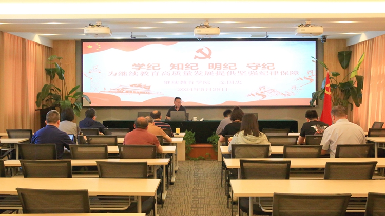 为深入学习贯彻习近平总书记关于党纪学习教育的重要讲话和重要指示精神,推动党纪学习教育走深走实,5月28日上午,继续教育学院在201会议室开展党纪学习教育专题党课活动。党总支书记金国忠为全体党员上了一堂党纪学习教育专题党课《学纪、知纪、明纪、守纪:为继续教育高质量发展提供坚强纪律保障》,围绕新修订的《中国共产党纪律处分条例》进行了深度解读与学习指导。