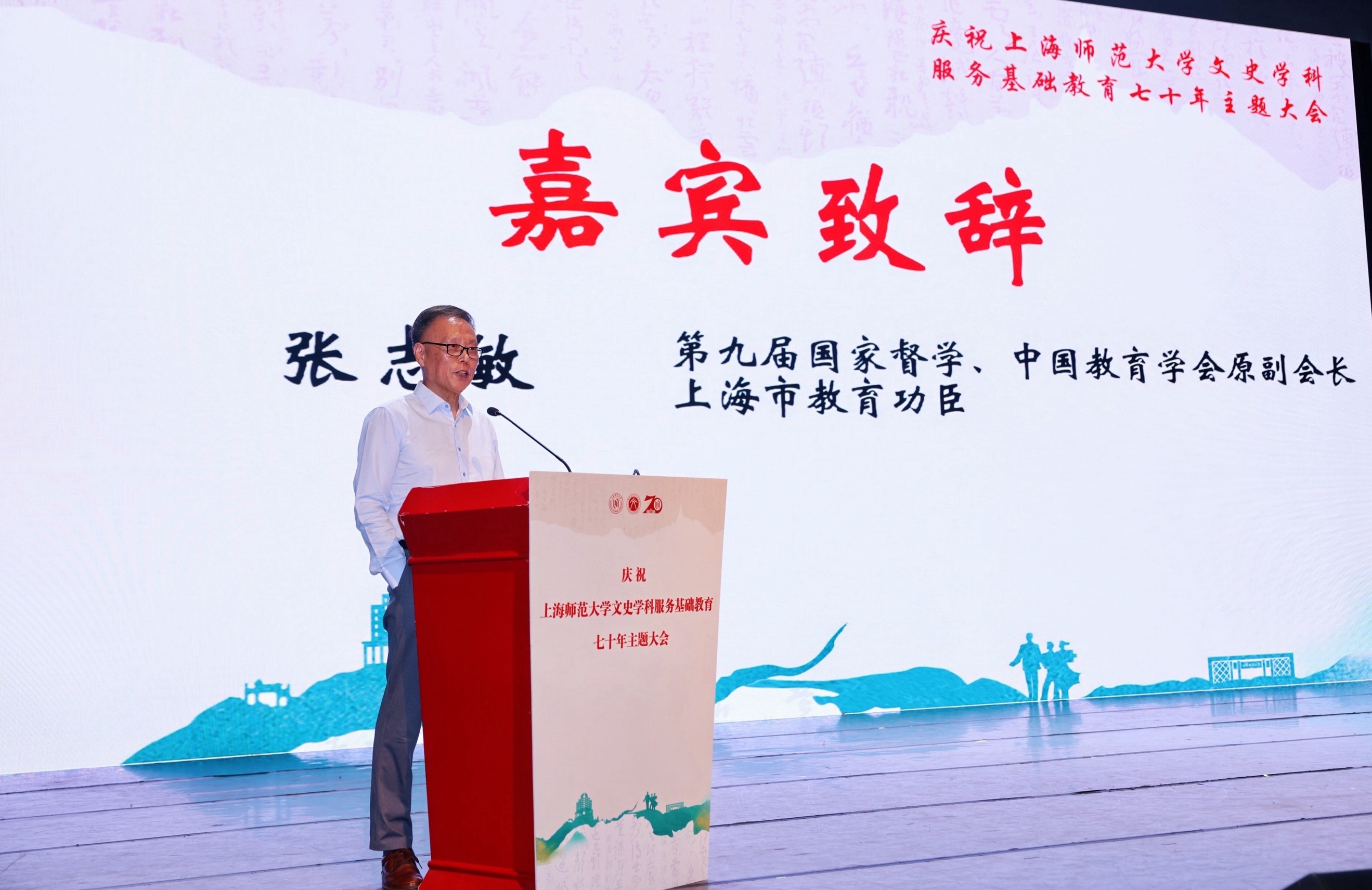 张志敏回顾了在上海师范大学中文系求学的经历,表示在上海师大所学习的“严谨求实”的为学之道、“尊重学生,热爱教育”的为师之道坚定了自身扎根教育行业的决心。他肯定了上海师大文史学科成立70年来为上海乃至中国基础教育领域所作出的巨大贡献。在面临全新的基础教育改革的时代机遇下,希望上海师大文史学科继续与时俱进,进一步引领新时代基础教育改革的前进方向。