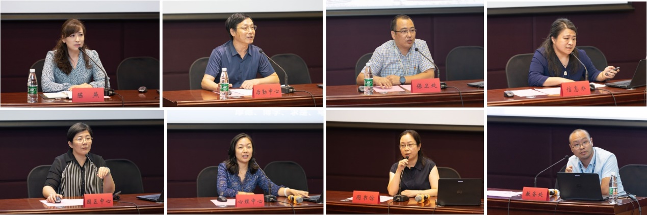 后勤服务中心主任顾中忙对学校的后勤服务作了细致的介绍,并提醒新生在疫情防控常态化的情况下做好个人防护。保卫部(处)部(处)长倪锋结合真实案例,提醒新生提高警惕,防盗防诈骗,并介绍了两校区为师生安全保驾护航的相关举措。信息化办公室副主任瞿雪萍从身份认证、智慧校园等六个板块为新生开展信息技术培训,并向新生普及了CUID、VPN&CARSI等知识。学生生活园区管理中心主任沈琳以“守正创新 生活园区工作理念与实践”为题,介绍了生活园区实践育人相关工作。心理咨询与发展中心主任吴燕霞从大学生心理健康角度出发,通过多样的活动形式普及心理健康知识,并为新生准备了丰富的心理健康“大礼包”。图书馆副馆长段晓林从馆藏资源、服务功能、空间布局和萌新活动四个方面详细说明了图书馆馆藏和服务。教务处行政科科长陆志昌向大家介绍了2021级新生选课流程及相关注意事项,重点阐述了学籍管理、学业诚信等内容。