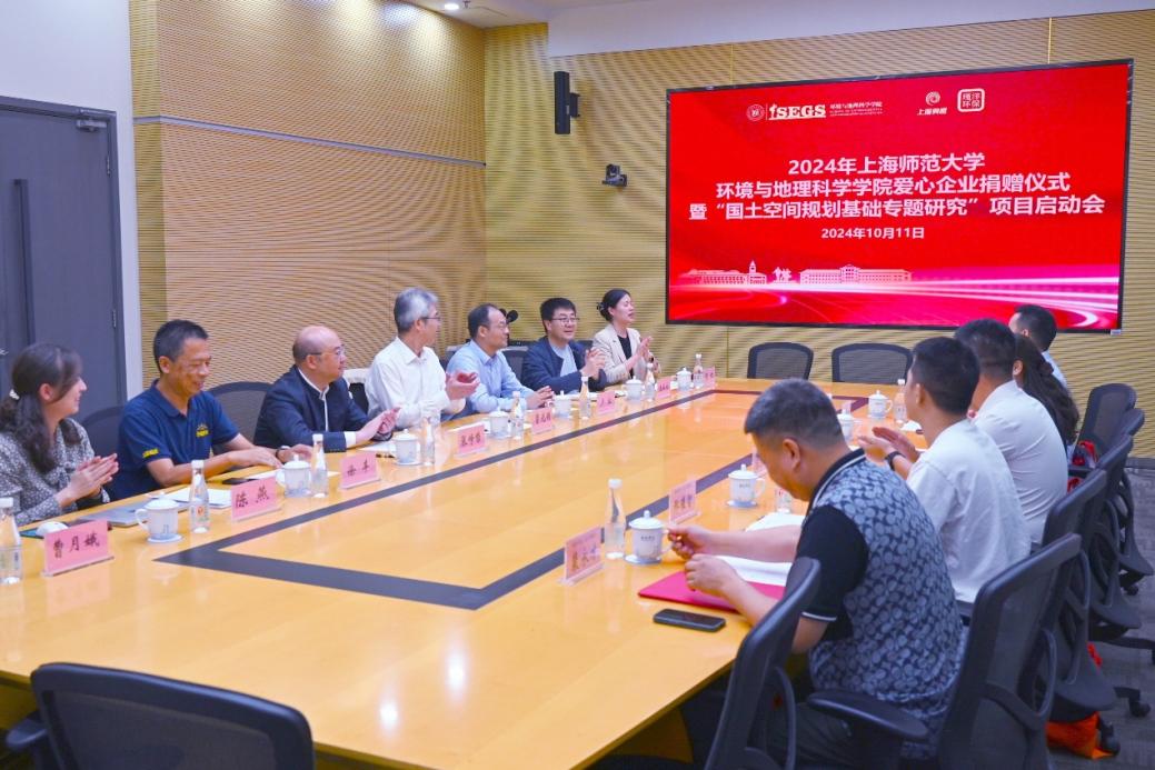 10月11日下午,环地学院爱心企业捐赠仪式暨“国土空间规划基础专题研究”项目启动会于徐汇校区会议中心举行。副校长张峥嵘,校总会计师、基金会副理事长曹光明,上海奥趣实业有限公司总经理吕丽莉一行、瑾洋环保科技(上海)有限公司总经理汪水平一行,校教育发展基金会、环地学院相关负责人和师生代表共同出席了此次活动,活动由环地学院党委副书记、副院长张红主持。