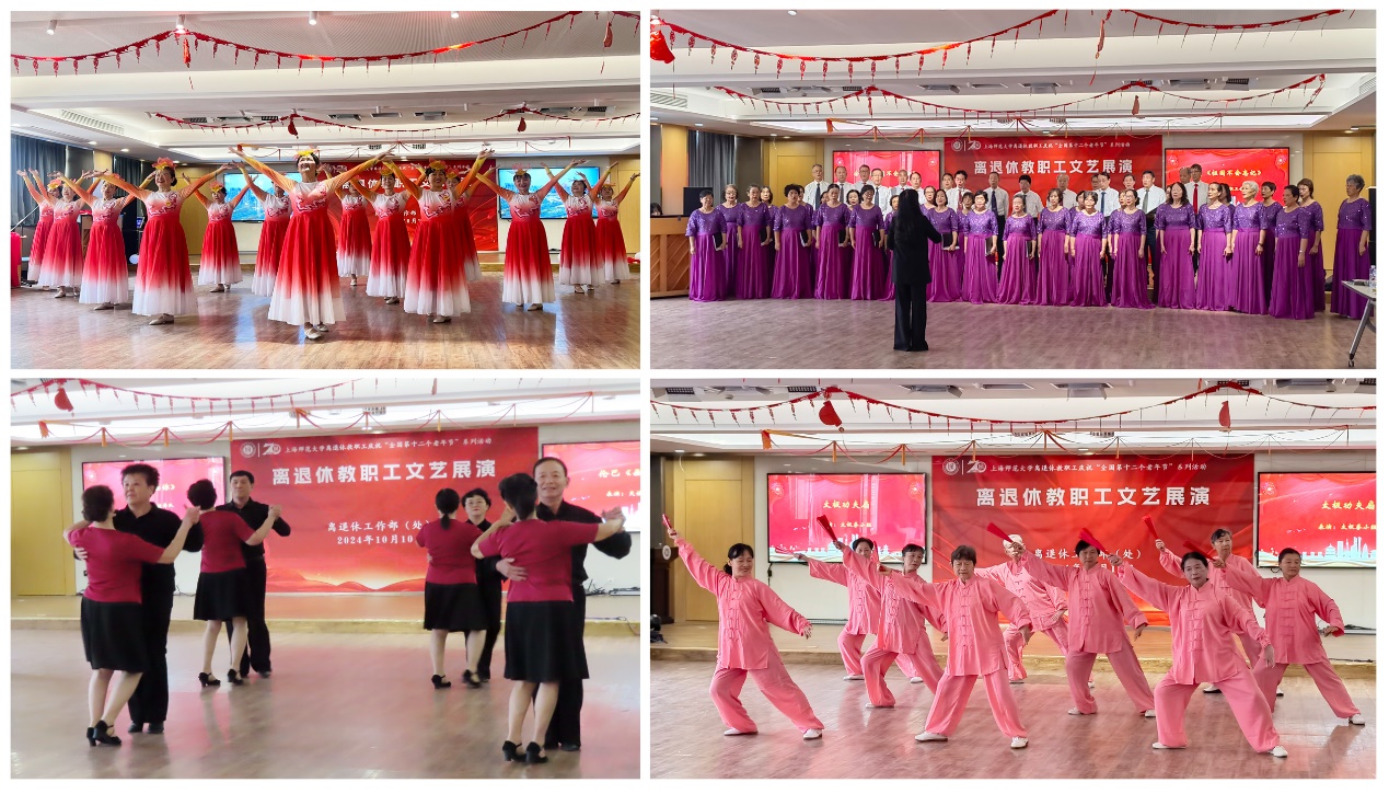 为庆祝全国“第十二个老年节”,迎接即将到来的学校70周年校庆,10月10日下午,离退休教职工文艺展演在香樟苑三楼多功能厅举行。老同志们欢聚一堂,以歌咏言,以诗诵志,以舞寄情,用文艺表演的形式庆祝自己的节日,展示新时代师大老同志的风采和积极向上的精神面貌。