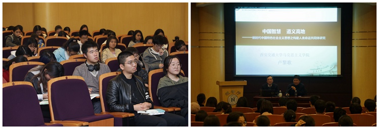 13日下午,思想政治理论教学改革“闻道中国”系列讲座在奉贤校区举行。卢黎歌教授走进《马克思主义基本原理概论》课堂,为学生作专题讲座。深入浅出的理论讲授,生动详实的案例分析,丰富有趣的教学手段,深深地吸引了在场学生。数理学院刘济民同学表示,听了卢教授的讲座,对习近平总书记提出的构建人类命运共同体的理念有了更深刻的理解和体会,从中感受到一种深沉的大国担当精神。商学院工商管理专业的刘潇同学表示,对他人有贡献是让自己幸福的唯一方法,我国致力于构建人类命运共同体,就是为世界贡献中国智慧。