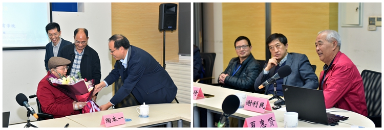 课程与教学论博士点初创者、首位博士点带头人、德高望重的陶本一教授带病来到会场,校友们不约而同起身迎候,肃然起敬。陶本一教授也深情表达了见到大家成长的喜悦,为课程与教学论博士点走过十五个年头而倍感欣慰。校友们为陶本一教授献上鲜花,表达美好祝福,并合影留念。