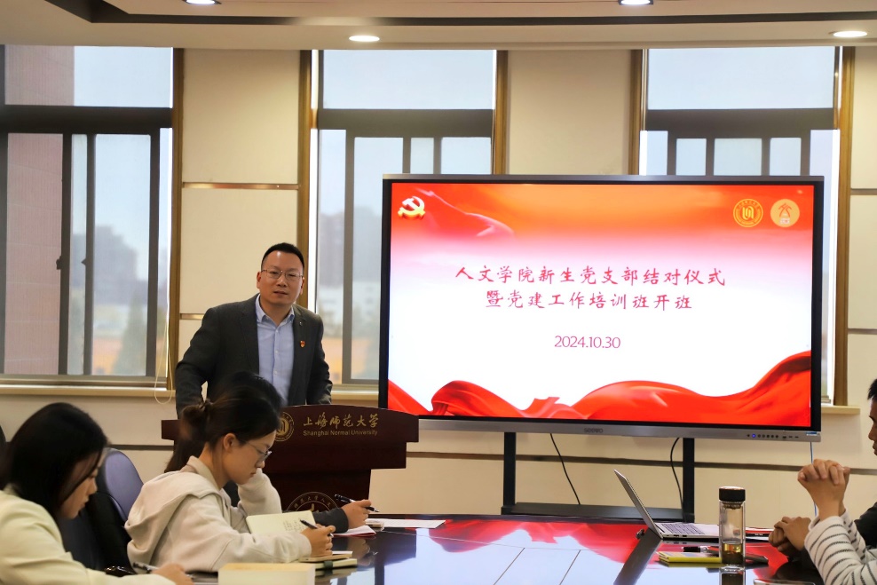 10月30日下午,人文学院新生党支部结对仪式暨党建工作培训班开班活动在徐汇校区文苑楼708会议室举行。人文学院党委书记潘黎勇,院党委副书记、副院长陈重来,院党委委员、副院长刘畅,副院长姚霏,各教工党支部书记以及辅导员出席活动。全体学生党支部书记参会。活动由人文学院党委委员、组织员戚静主持。